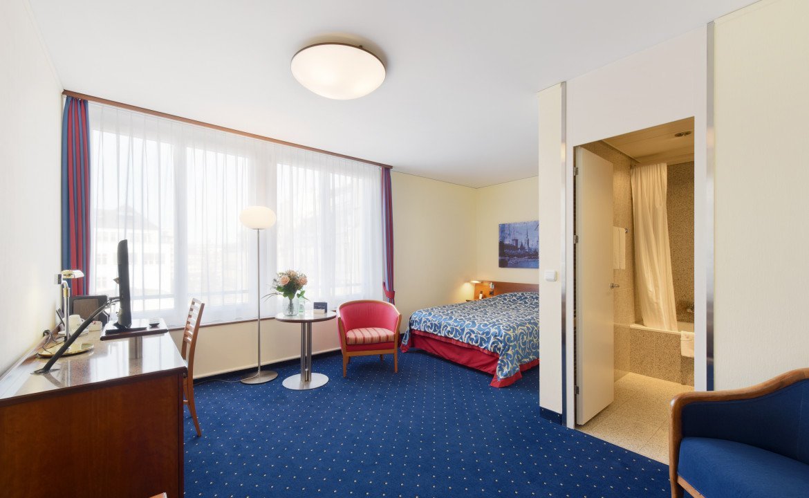 This cosy 21m² room with a french bed (1,40m) incl. individually adjustable degree of hardness, radiates timeless elegance. The room is equipped with exclusive furniture made of regional materials and modern technical facilities.